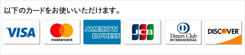 Visa、Mastercard、American Express、JCB、Diners Club、Discover
